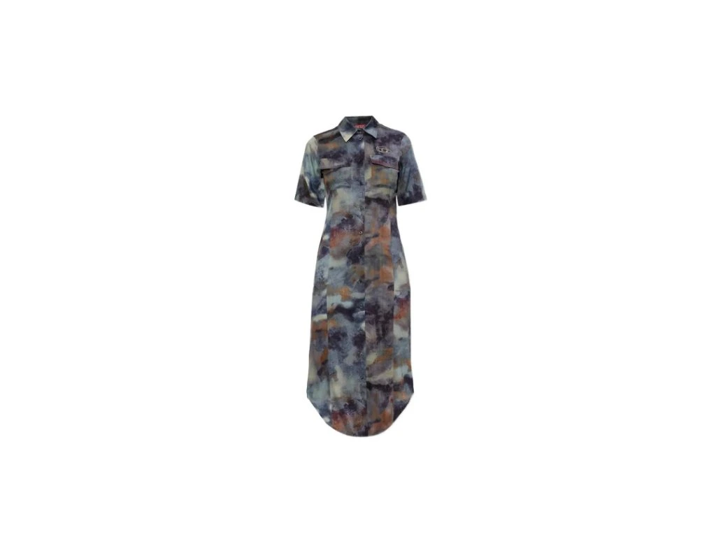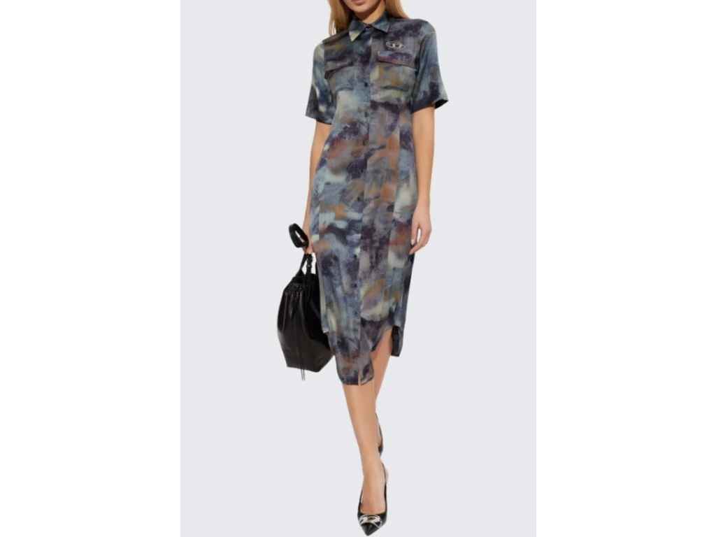 Splývavé dámské košilové šaty jsou doplněny vyšité logo DIESEL na levé straně hrudi a dvě náprsní kapsy.