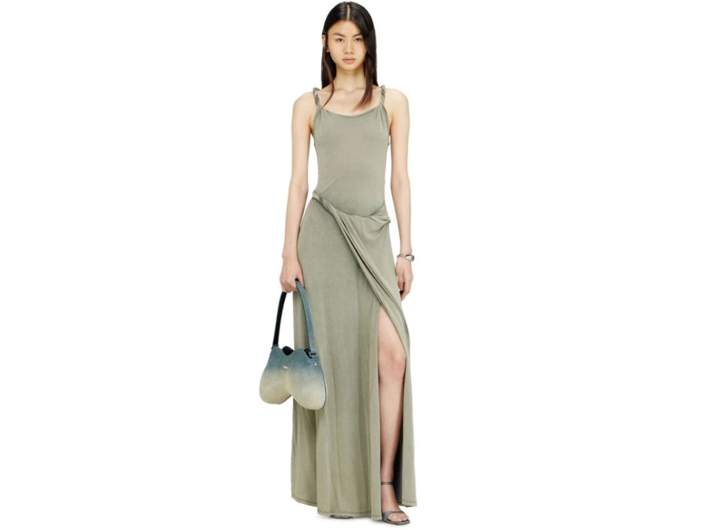 Tyto dámské maxi šaty mají štíhlou siluetu, kterou zjemňuje kroucený design ramínek a zavinovací sukně. Jsou vyrobeny z žerzeje TENCEL™ s příměsí modalu pro měkký a splývavý pocit a na zádech jsou zdobeny vyšívaným logem Oval D.