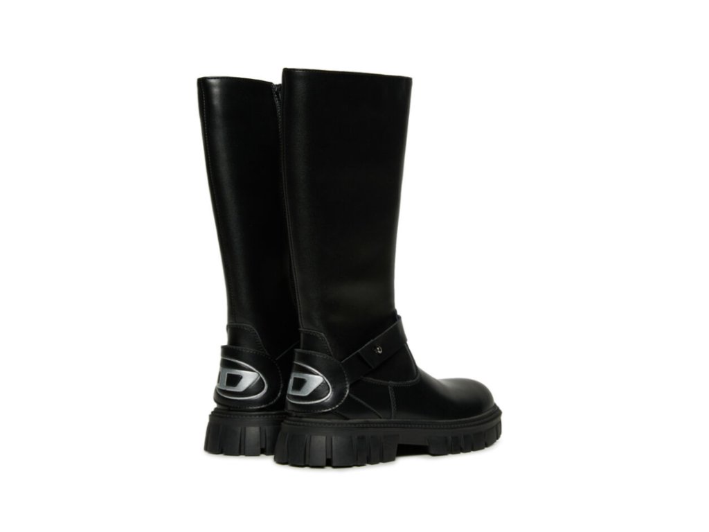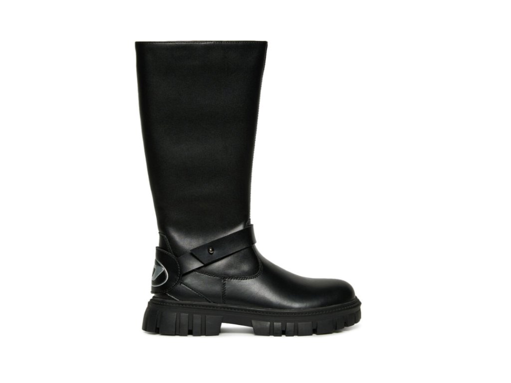 Dámské kozačky s robustní podrážkou mají praktické zapínaní na zip na vnitřní straně a jsou doplněny o logo D.