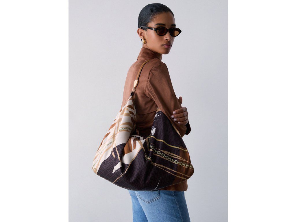 Středně velká saténová taška s potiskem
