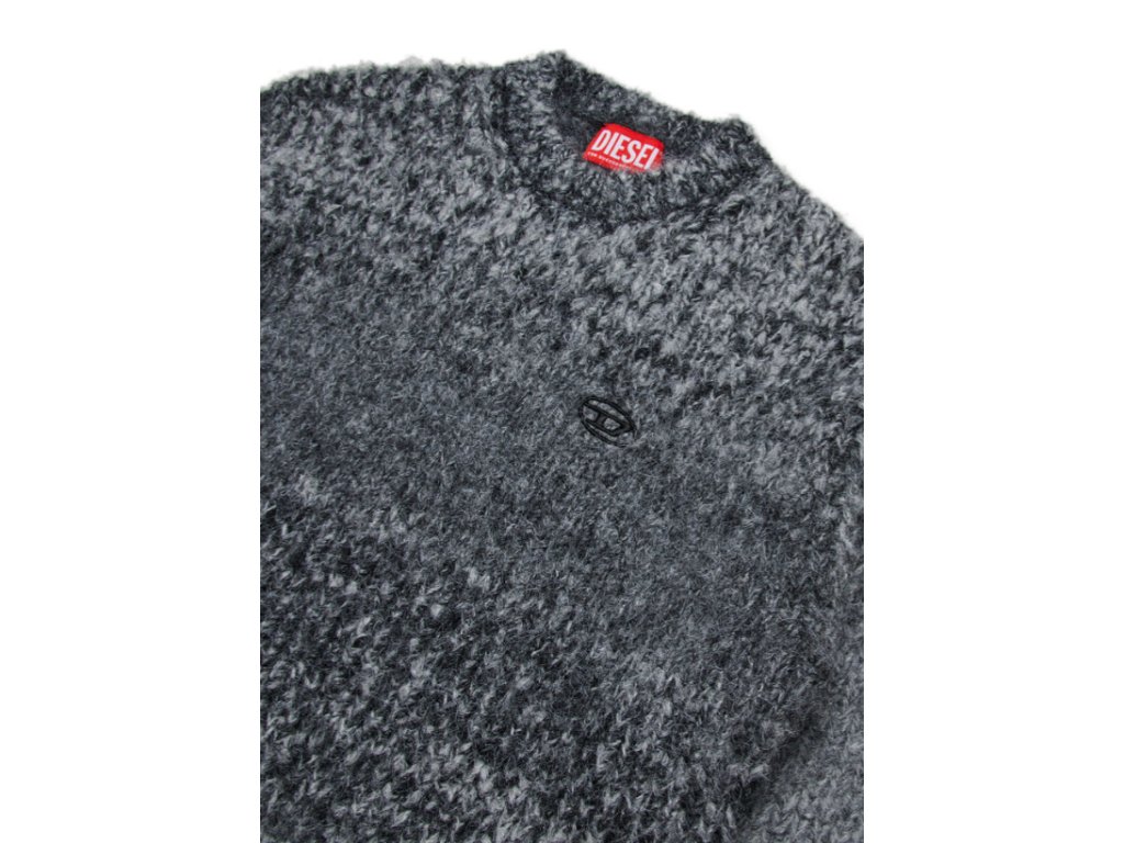 Pletený svetr s kulatým výstřihem je doplněn o logo Oval D.