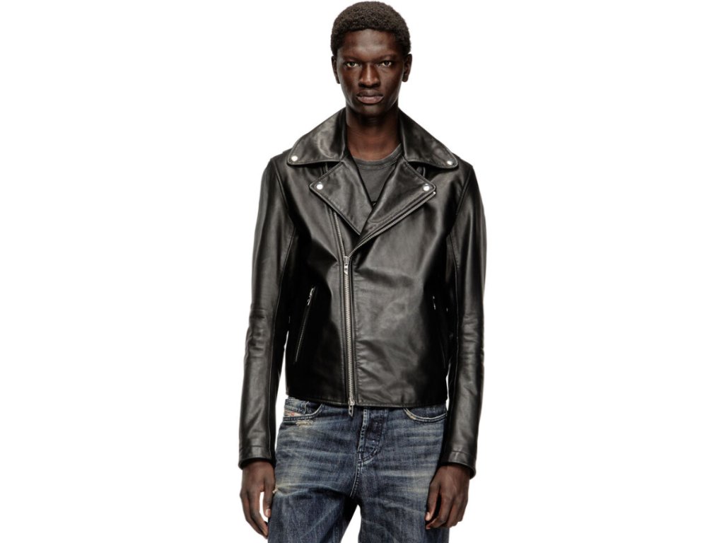 Tato pánská motorkářská bunda si vypůjčuje siluetu ikonické Perfecto – všimněte si asymetrického předního dílu, klop na druk a manžet na zip. Je vyrobena z tulované voskované kůže, která je zároveň pružná, takže se se jistě stane vaším oblíbeným kouskem šatníku. Zadní lem nese jemný odkaz na firemní styl v podobě loga Oval D.