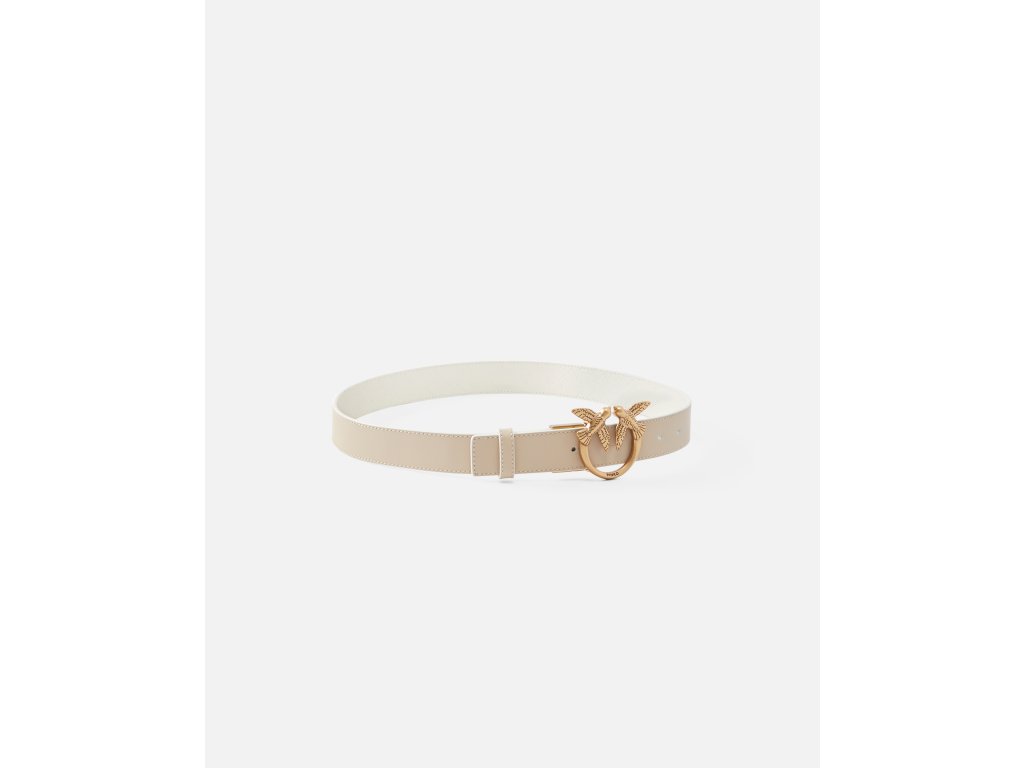 3 cm pásek z oboustranné kůže, který lze nosit buď na hladké straně, nebo na straně zdobené imprimé vzorem monogramu Love Birds. Pásek je zdoben sponou Love Birds Diamond Cut.