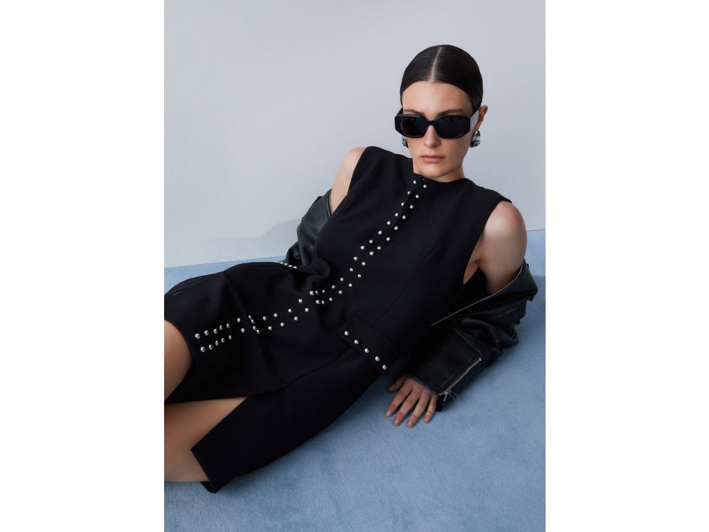 MINI ŠATY S ROZPARKY A STŘÍBRNÝMI CVOČKY WA6119 - 22222