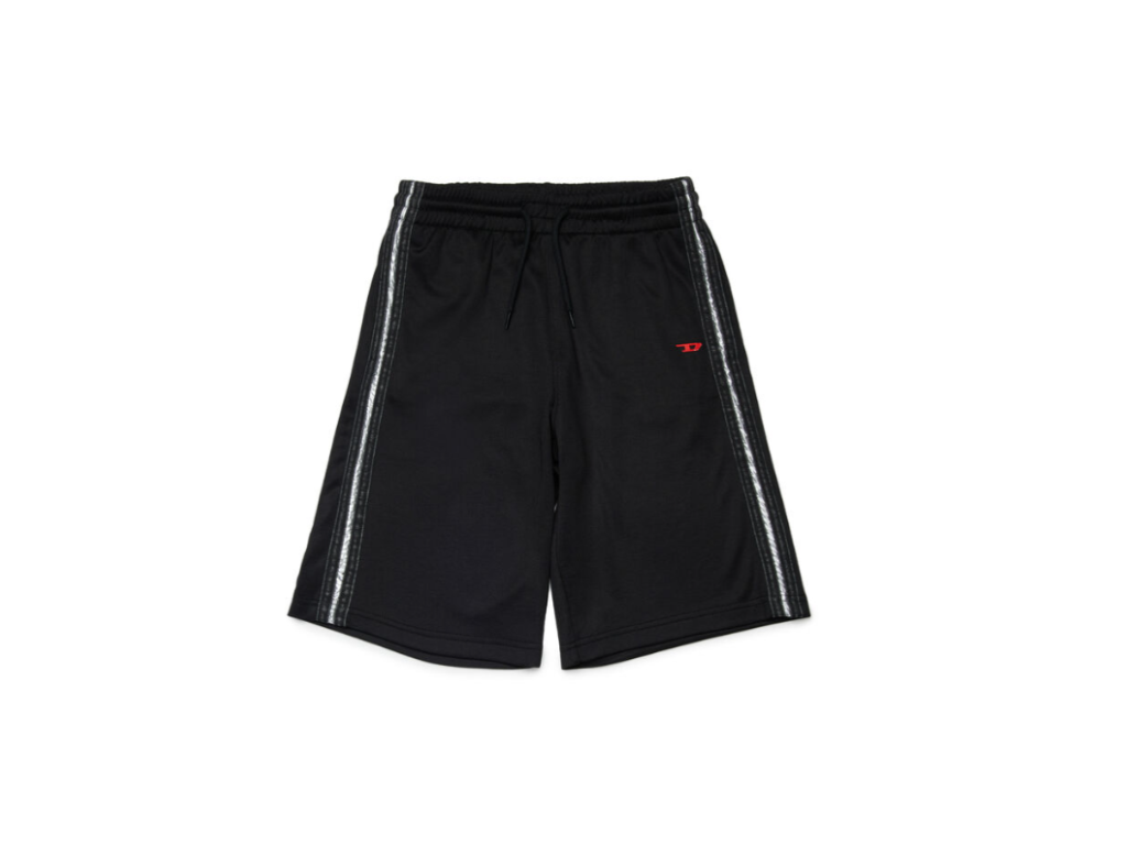 Krátké kalhoty vyrobené z odolné směsi polyesteru a bavlny s elastickým pasem se stahovací šňůrkou. Boční pásky s kontrastními detaily vedou podél nohavic a červené pogumované logo D na přední straně dodává kalhotám osobitý vzhled.