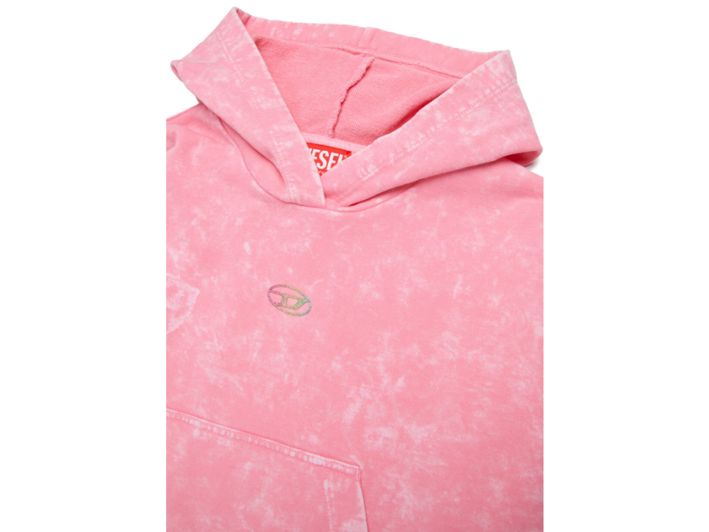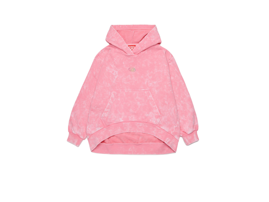 Mikina s kapucí a upraveným mramorovaným efektem, dlouhými rukávy a žebrovanými lemy. Volný silueta zahrnuje praktickou přední klokaní kapsu, spuštěné rukávy a logo Oval D na hrudi, které dodává stylu rozpoznatelný charakteristický prvek.
