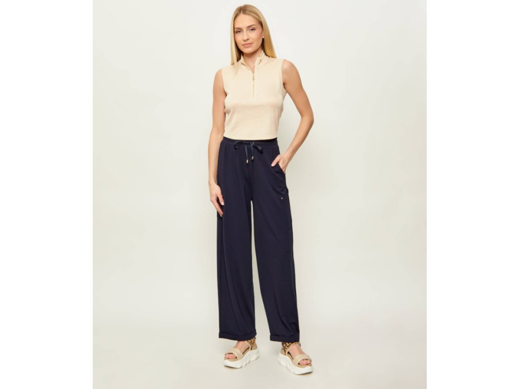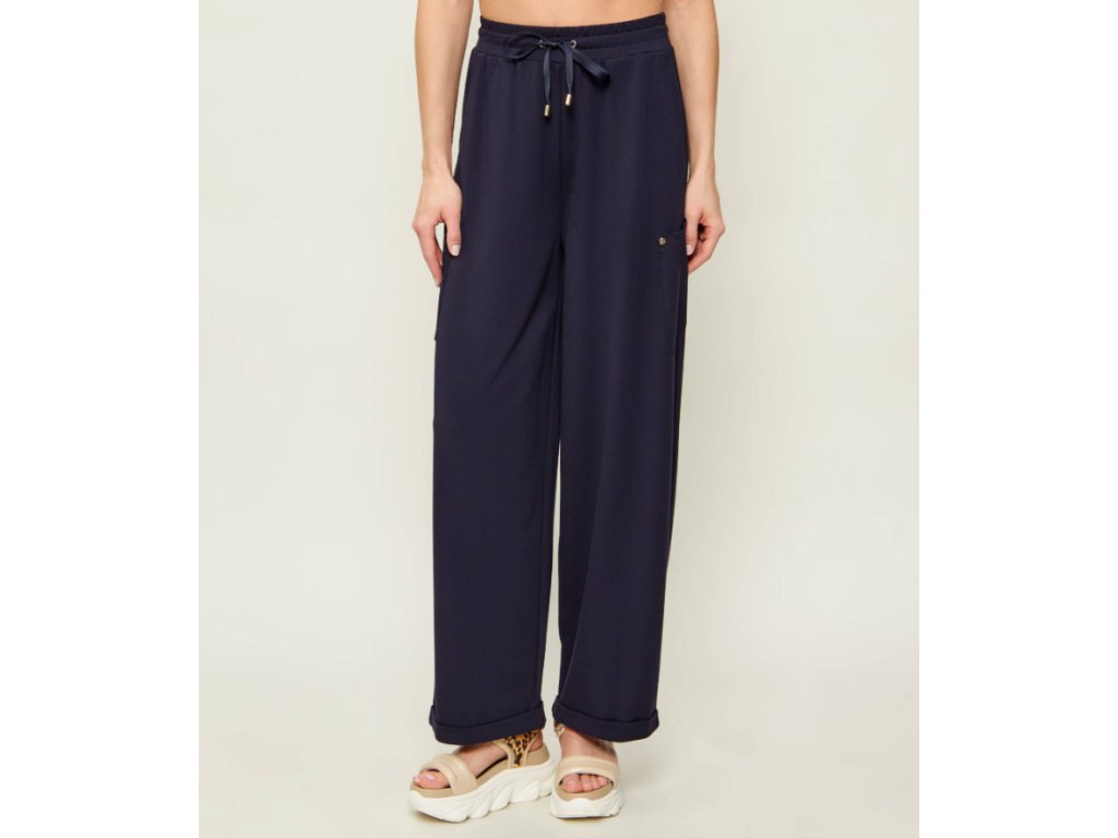 Elastické tepláky s bočními kapsami a šňůrkou v pase.