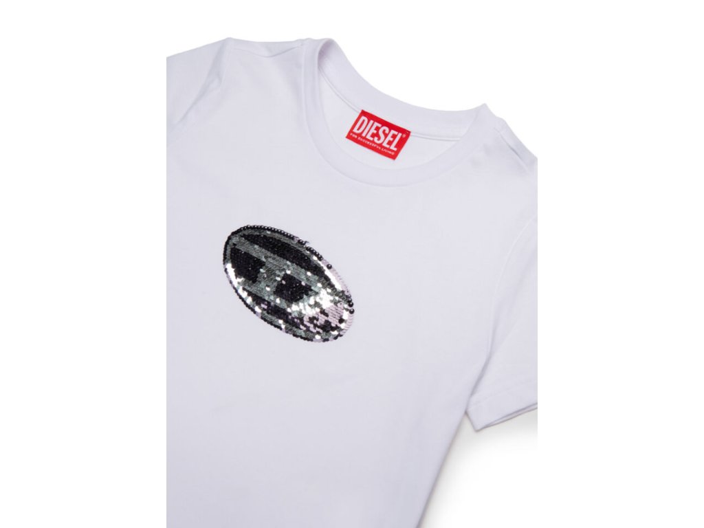 Dámské bavlněné tričko s kulatým výstřihem a krátkým rukávem je doplněné o logo Oval D a ozvláštněné flitry, které mu dodávají zářivý a dynamický efekt.