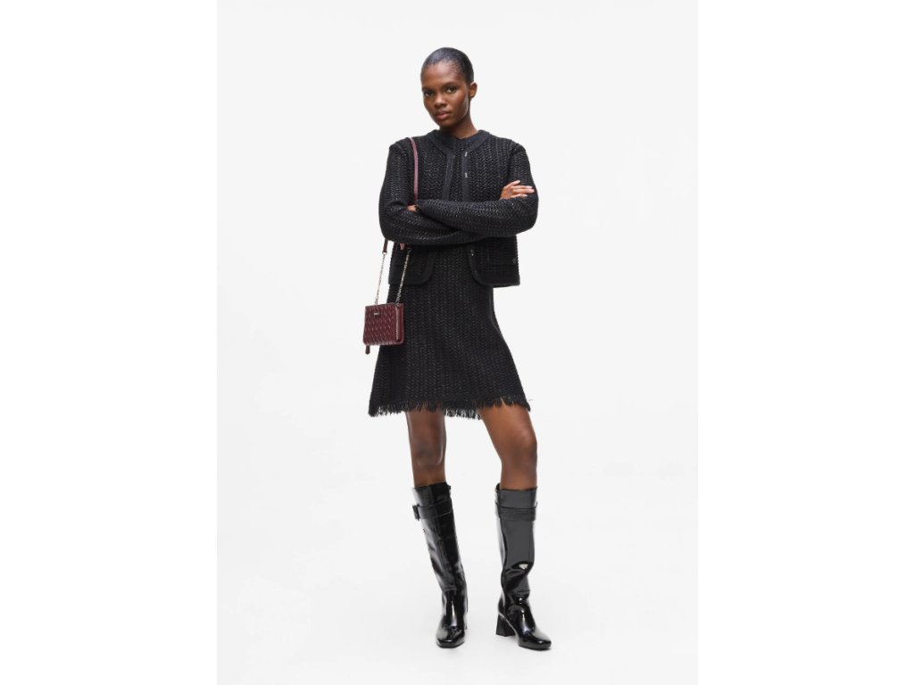 Pletený kadrigan s kulatým výstřihem je doplněn o dvě čtvercové kapsy na přední straně.