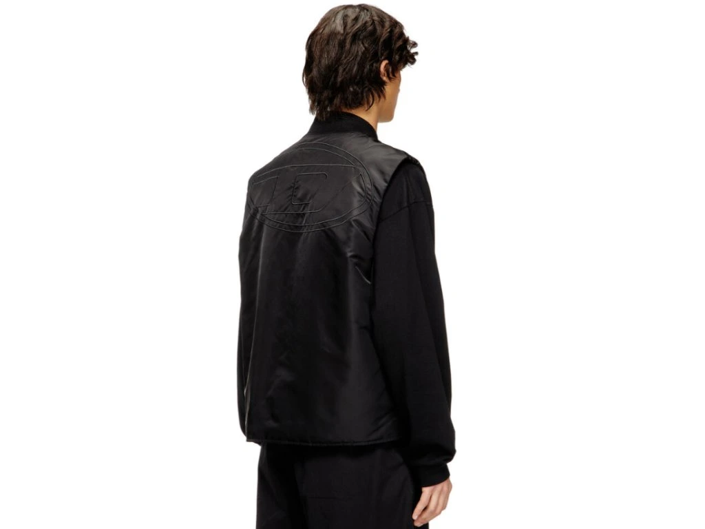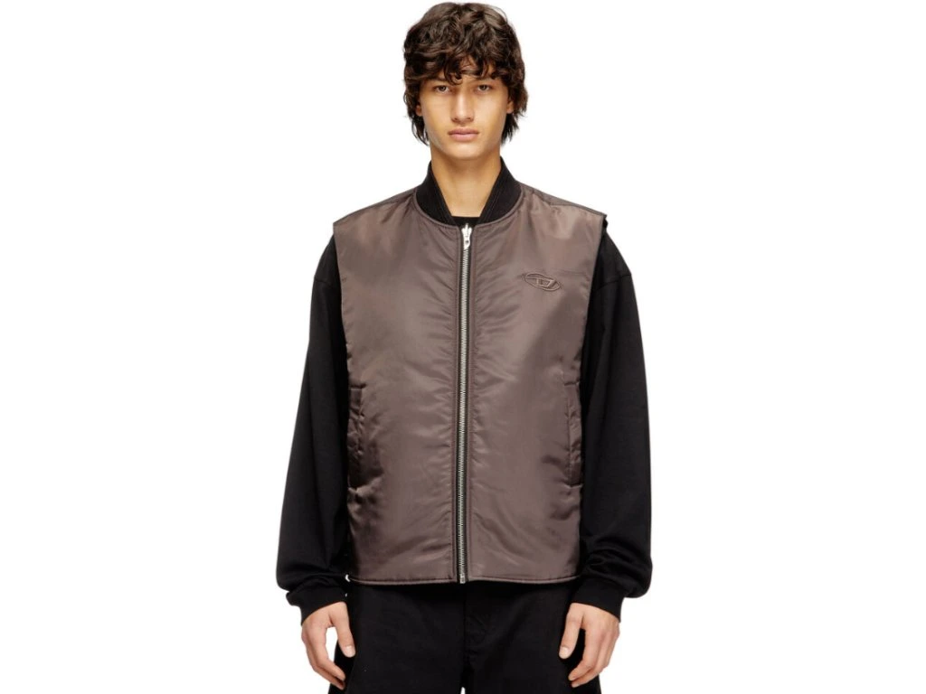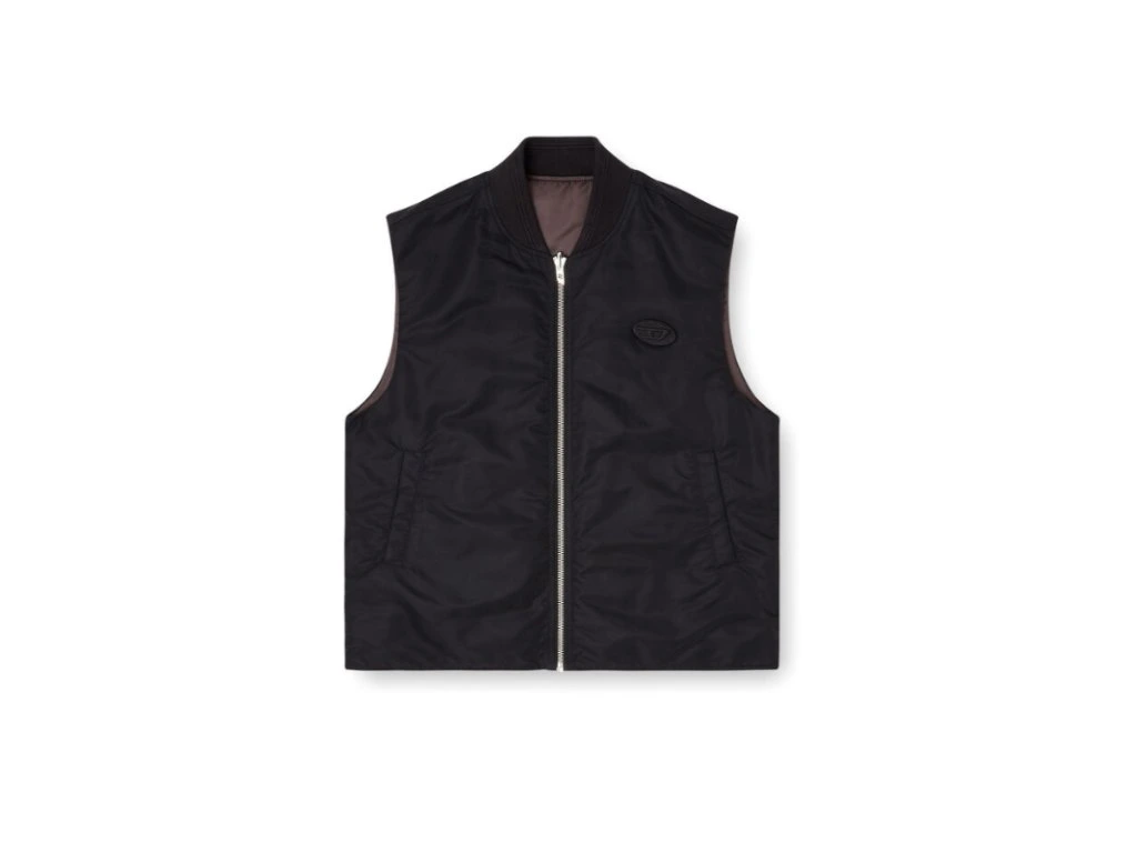 Tato pánská prošívaná vesta je všestranným a praktickým kouskem oblečení je oboustranná a ve dvou barevných provedeních. Je vyrobena ze saténu ze 100% recyklovaného nylonu, má žebrovaný výstřih bomber, robustní přední zip a velké oválné logo D vyšité na zádech. Menší tónované provedení ikonického loga zvýrazňuje hrudník na obou stranách.