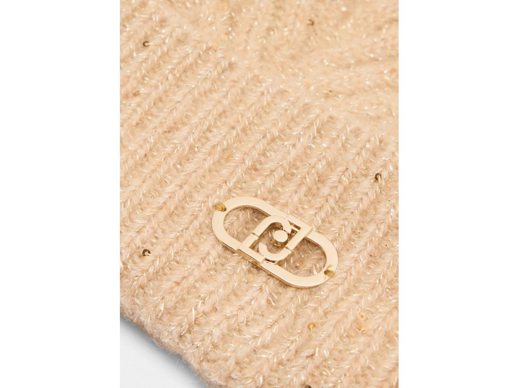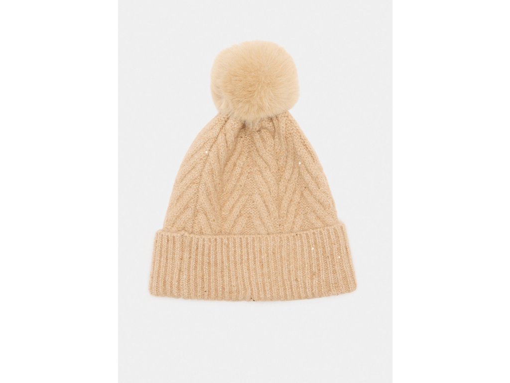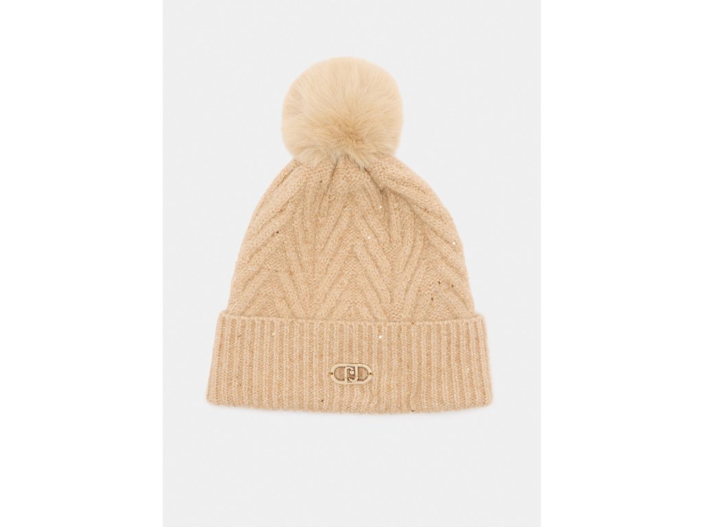 Zimní pletená čepice s kamínkovými aplikacemi.